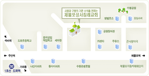 이번 7월 <서울 수도권 친교회>는 7월 9일(월), 인천에 있는 제물포 성서침례교회 이용대 목사님께서 초청하여 주셨습니다. 이번 친교회에 사랑하는 목사님 내외분과 전도사님들을 초대합니다. 여름사역으로 인해 몹시 바쁘시겠지만 오셔서 함께 해주신다면 더욱 복되고 즐거운 자리가 될 것입니다. 특별히 이용대 목사님께서 이번 7월 친교회에 참석하시는 목사님들을 위해 자세한 교회 약도를 손수 제작하여 보내주셨습니다. 이용대 목사님의 세심한 배려에 감사의 말씀을 드립니다.